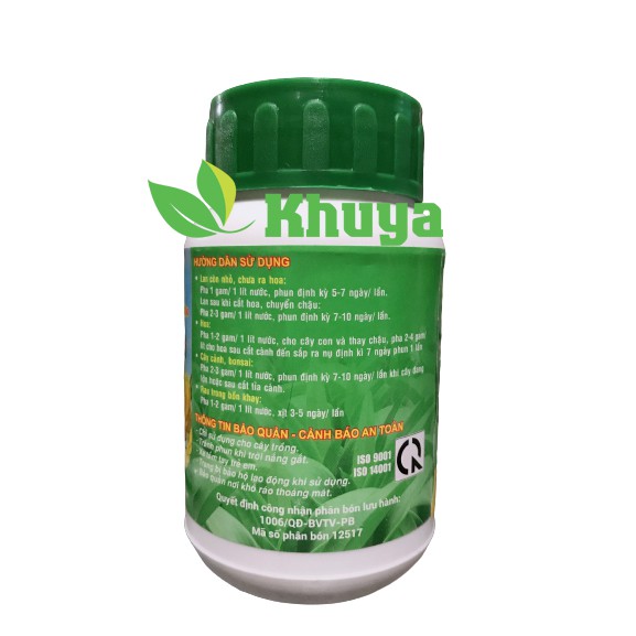 - Hoa: Pha 1-2gr/1 lít nước, cho cây con-chuyển chậu, pha 2-4gr/1 lít nước, cho hoa sau khi cắt cành đến sắp ra nụ. Phun định kỳ 7-10 ngày/lần