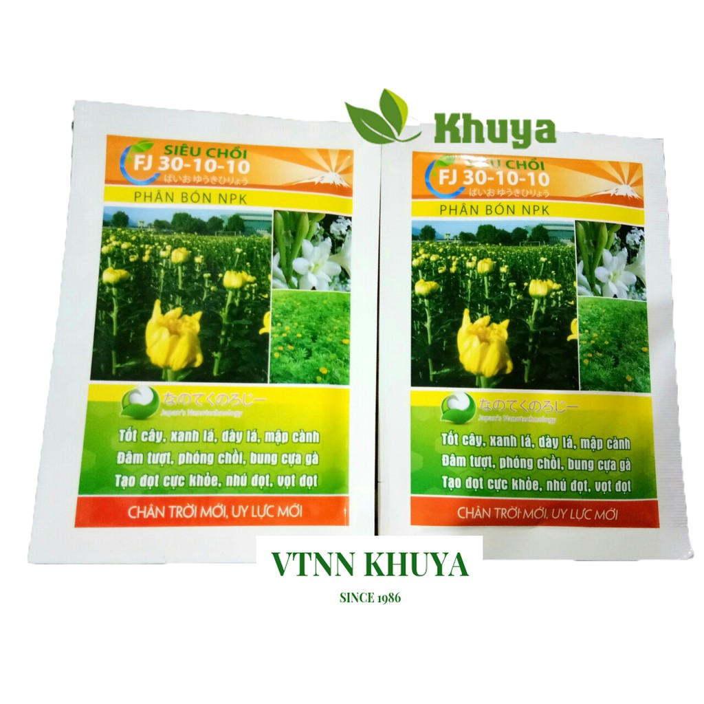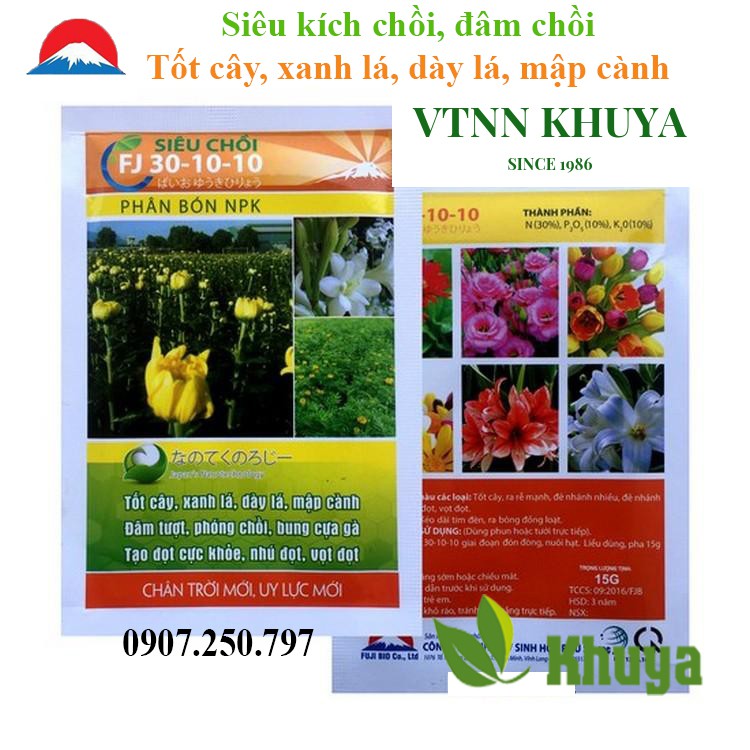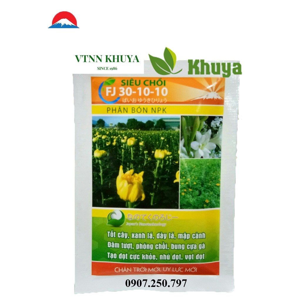 Phân bón lá Fuji FJ 30-10-10 gói 15gr Siêu đâm và kich chồi - Xanh dày lá