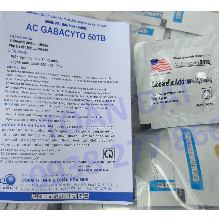 Giới thiệu Phân Bón Lá GA3, Gibber 50TB - Gibberellic Acid 100% 50g/kg