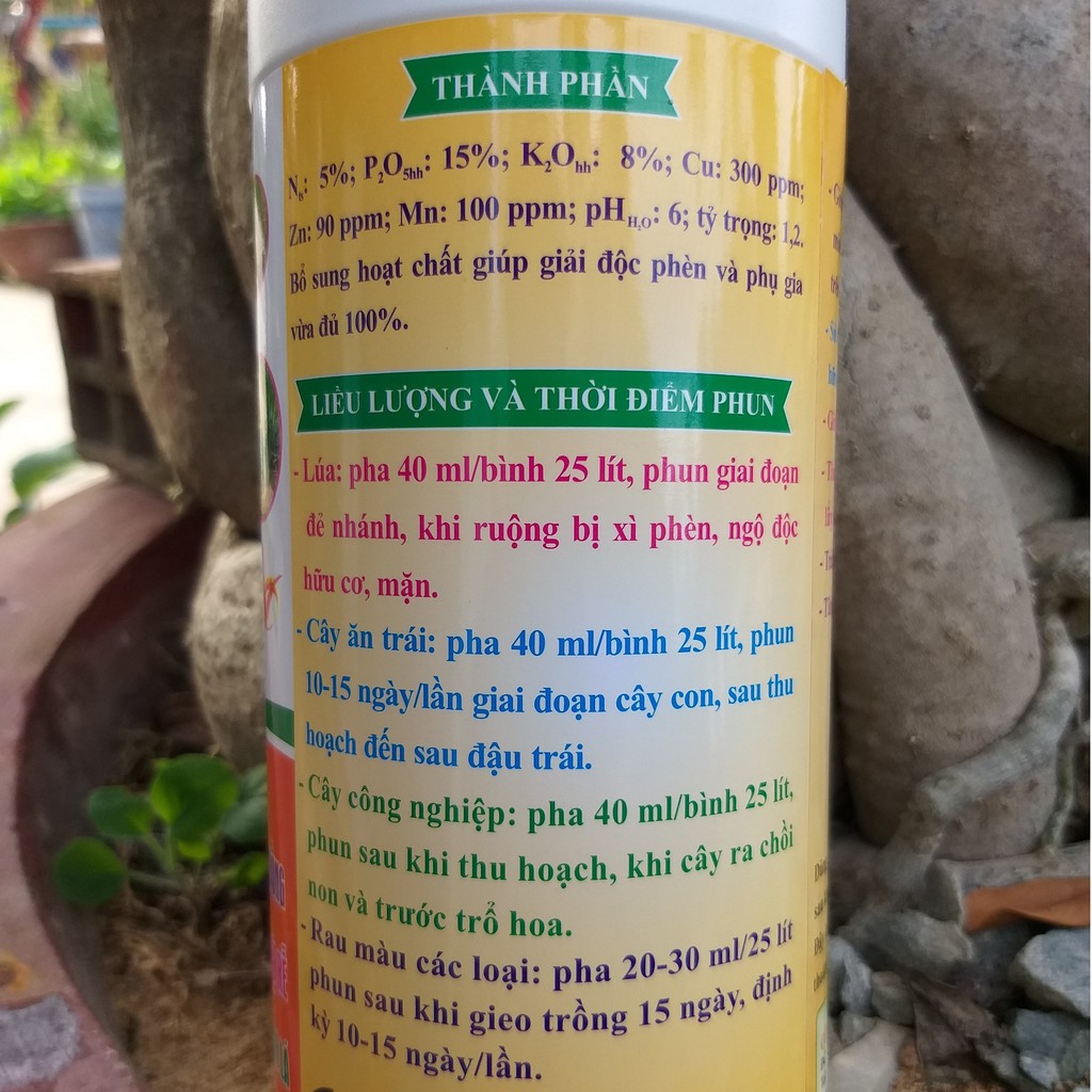 + Có thể pha 1ml cho 1 lít nước tưới xung quanh gốc cây, quanh vùng rễ cây