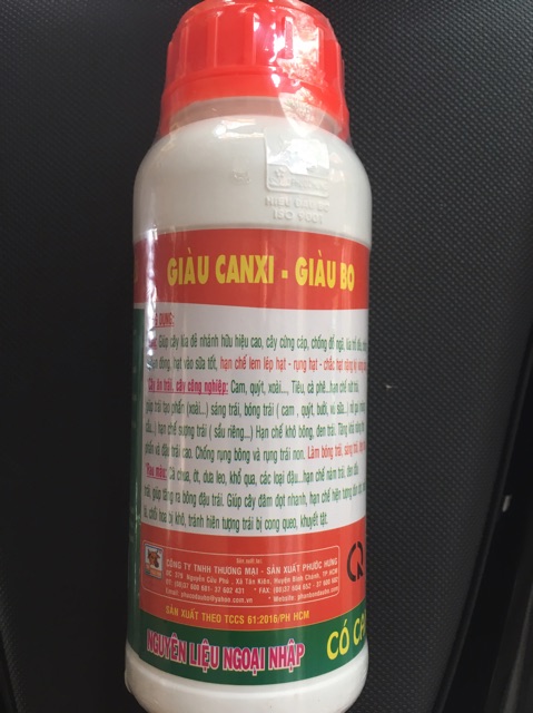-Công Dụng: cung cấp lượng Canxi và Bo cho cây trong giai đoạn ra hoa, đậu quả và nuôi trái. Giúp trái lớn nanh, chống rụng hoa rụng trái non. Giúp cứng cây dày lá, tăng sức đề kháng cho cây.-Hướng dẫn sử dụng: pha 50ml/20 lít nước để phun cho cây trong giai đoạn phát triển thân lá, trước khi ra hoa, sau khi đậu trái.