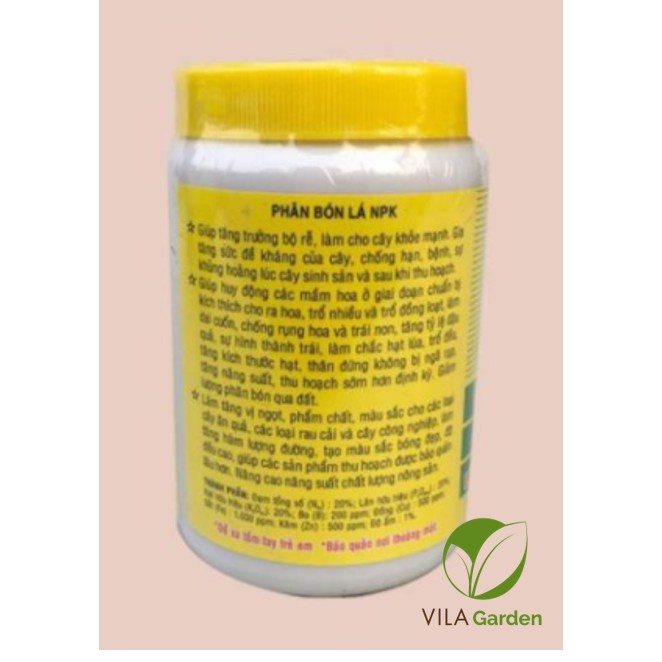 N 20% – P2O5 20% – K2O 20% +TE (nguyên tố vi lượng: Bo, Co, Cu, Fe, Mn, Zn giúp cây sinh trưởng và phát triển tốt hơn).