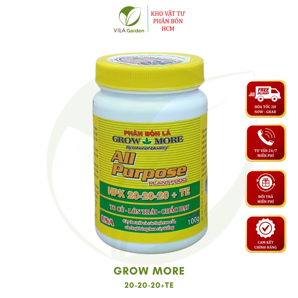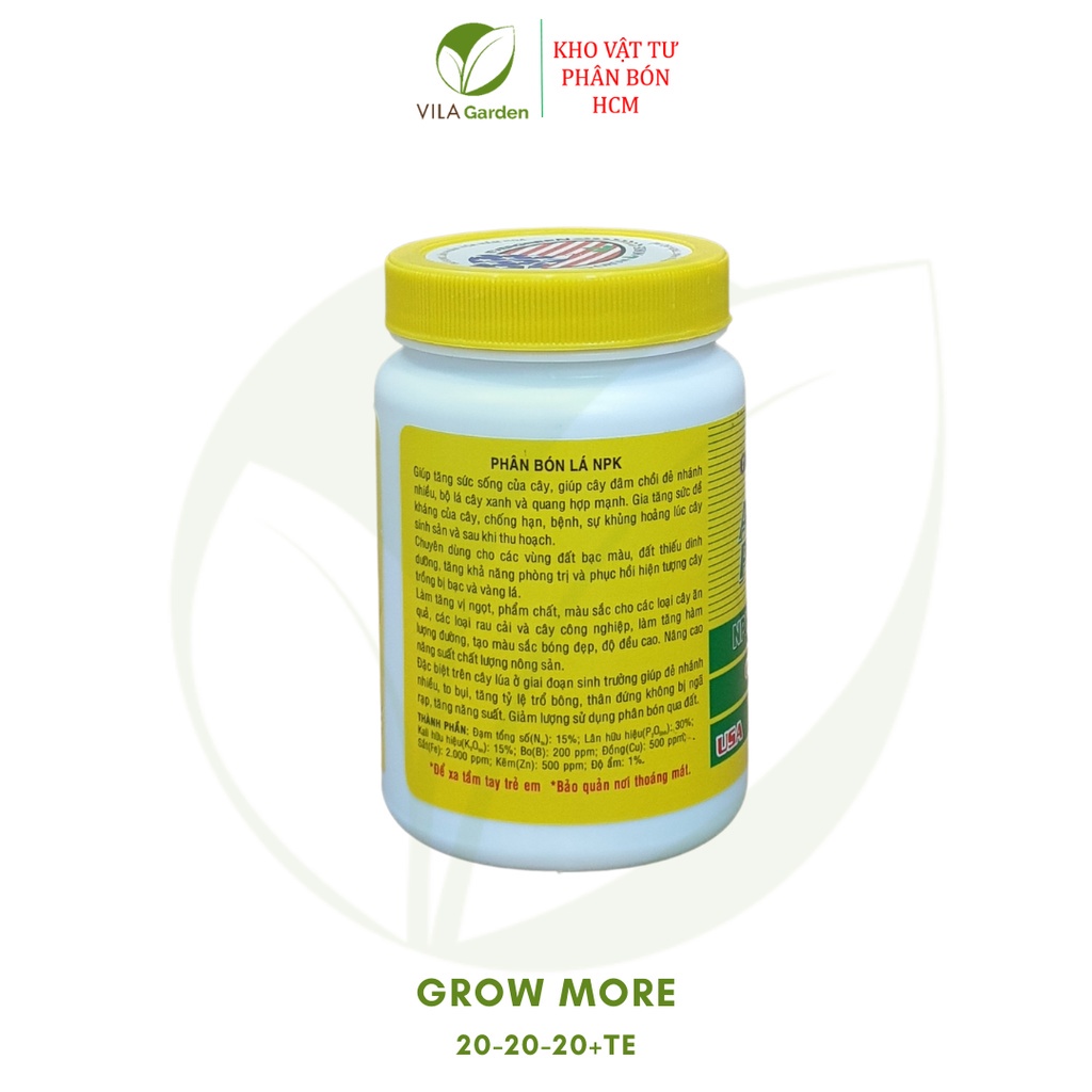 Phân bón lá Growmore 20-20-20 + TE, nguyên liệu nhập từ MỹLà sản phẩm phân bón lá kích thích sinh trưởng, tăng sức đề kháng trong giai đoạn phát triển.