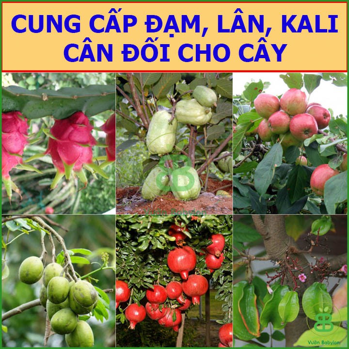 Công dụng: Sử dụng cho các giai đoạn sinh trưởng và phát triển của cây làm cho cây khỏe mạnh. Cung cấp đạm, lân, kali cân đối giúp cây vừa phát triển cành lá, vừa nuôi hoa, nuôi trái tốt.