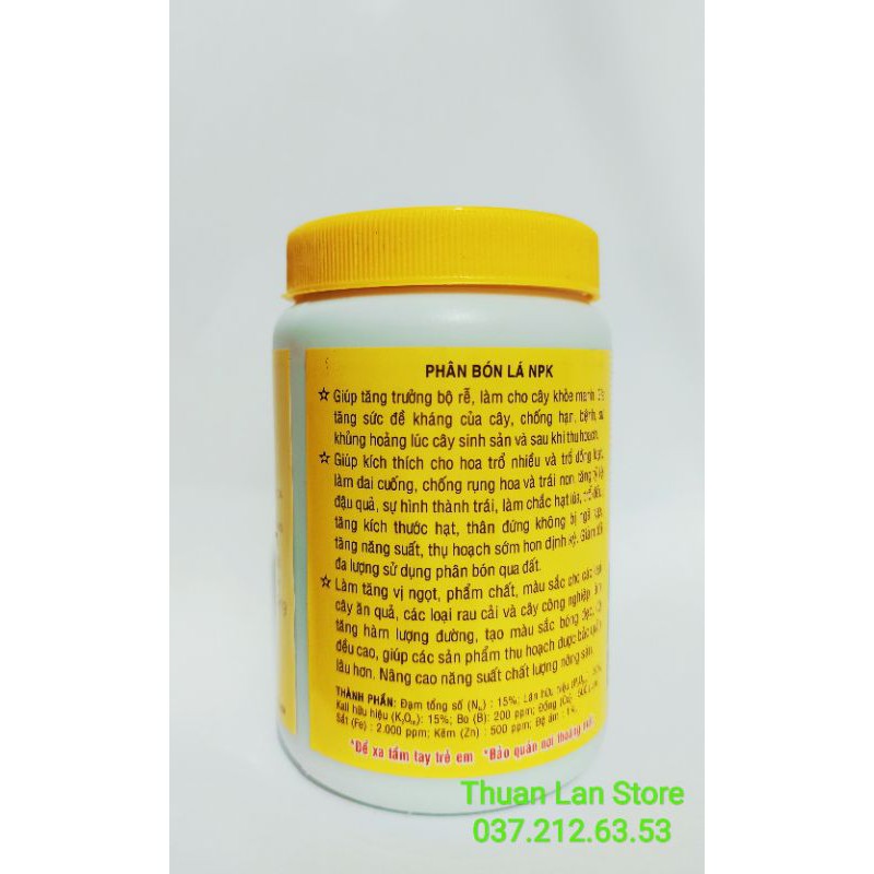 N 20% – P2O5 20% – K2O 20% +TE (nguyên tố vi lượng: Bo, Co, Cu, Fe, Mn, Zn giúp cây sinh trưởng và phát triển tốt hơn).