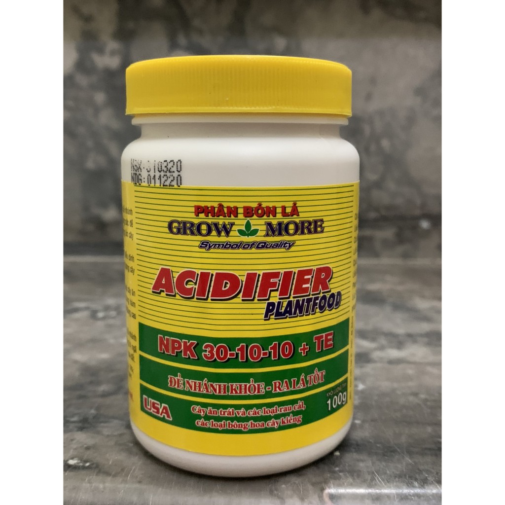 Phân bón lá Grow More 30-10-10+TE chuyên dùng cho các vùng đất phèn, đất bạc màu, đất thiếu chất dinh dưỡng, giúp hạ phèn rất hiệu quả và có khả năng phòng trị và phục hồi hiện tượng cây trồng bị bạc và vàng lá.