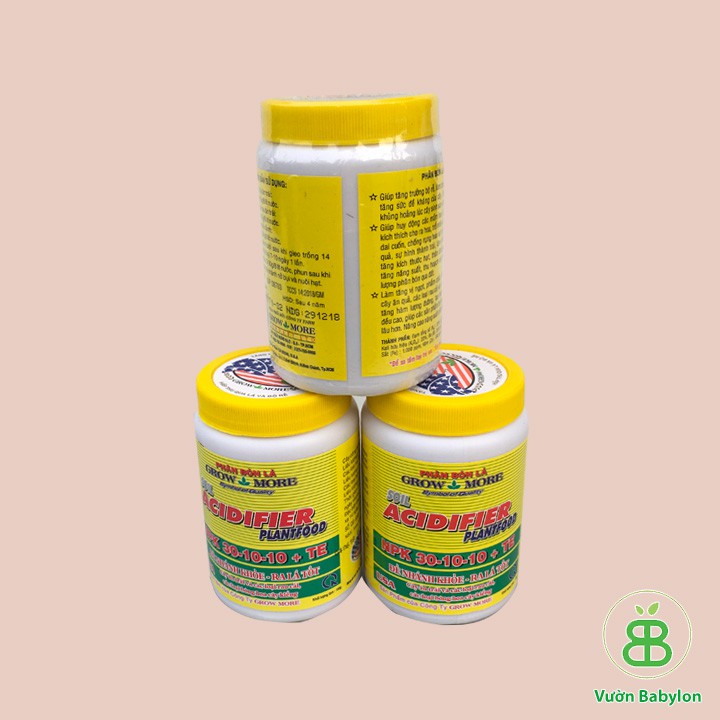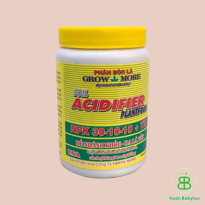 Phân bón lá Grow More 30-10-10+TE chuyên dùng cho các vùng đất phèn, đất bạc màu, đất thiếu chất dinh dưỡng, giúp hạ phèn rất hiệu quả và có khả năng phòng trị và phục hồi hiện tượng cây trồng bị bạc và vàng lá.