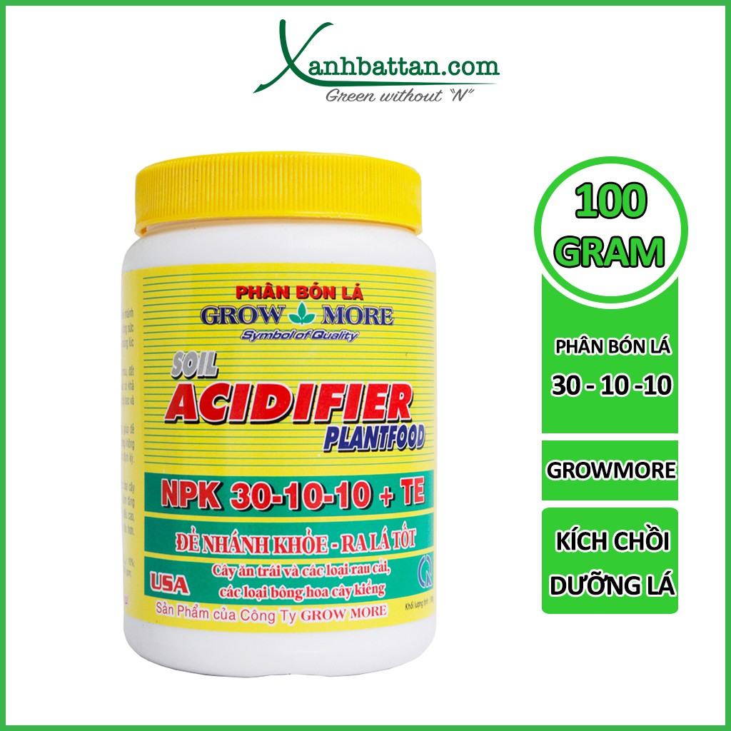 Giới thiệu Phân bón lá GROWMORE Acidifier NPK 30-10-10 100 Gram