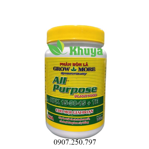 Phân bón lá GrowMore NPK 15-30-15 + TE 100gr All Purpose Plant FoodCung cấp dinh dưỡng qua lá và rễ - Sản phẩm Hoa Kỳ & Uy tín toàn cầu