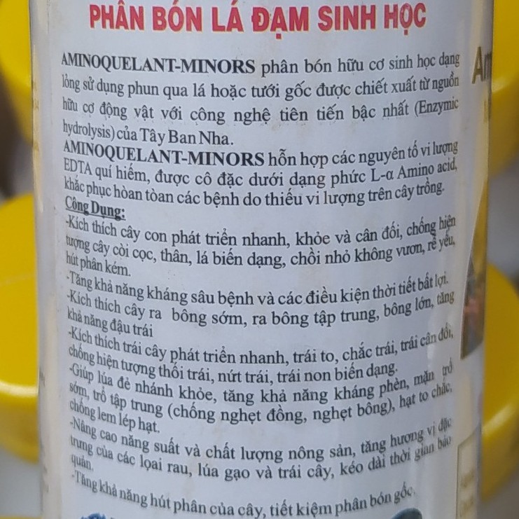 AminoQuelant-Minors hỗn hợp các nguyên tố vi lượng EDTA quý hiếm,được cô đặc với dạng phức L-a Amino Acid,khắc phục hoàn toàn các bệnh do thiếu vi lượng trên cây trồng.