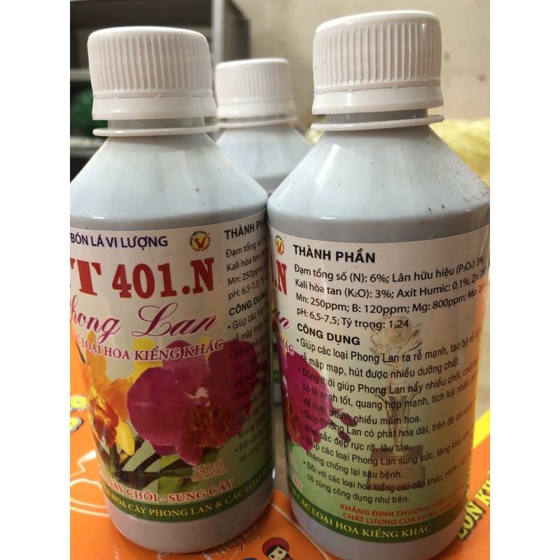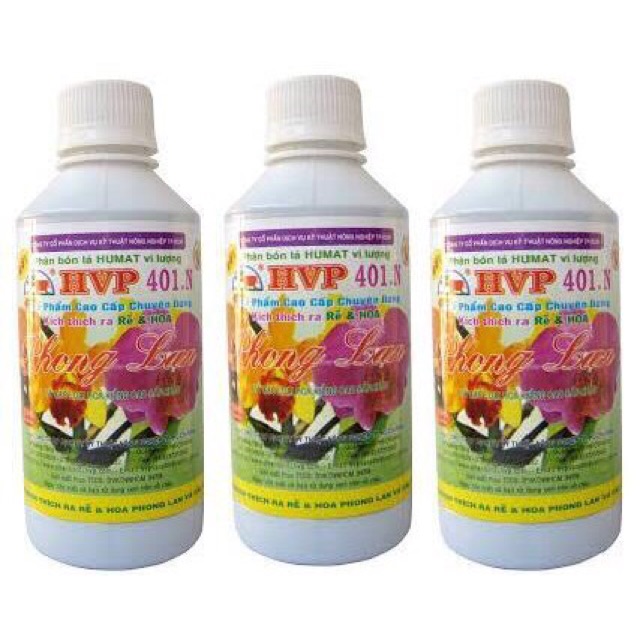 Phân Bón HVP 401 Nảy chồi Ra rễ Sung cây 250ml/chaiThành phần: NPK: 6-3-3; Axit humic: 0.1%, Zn: 750ppm; Mn: 250ppm; B: 120ppm; Mg: 800ppm: Mo: 2ppm; pH: 6,5-7,5, Tỷ trọng: 1.24