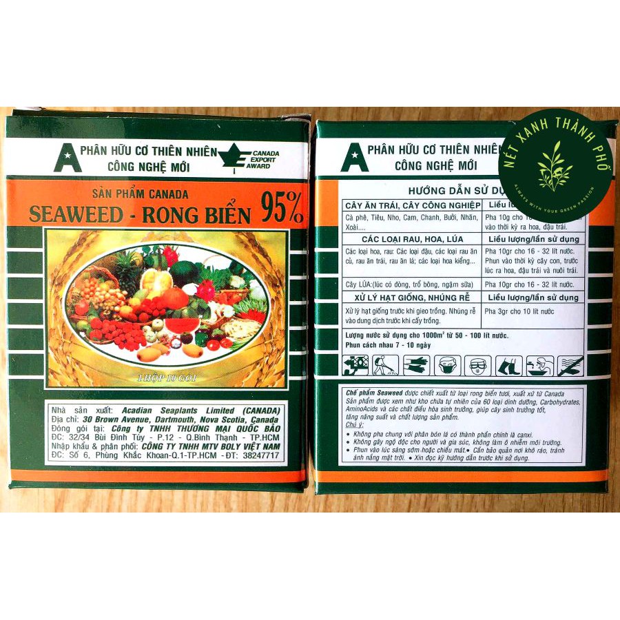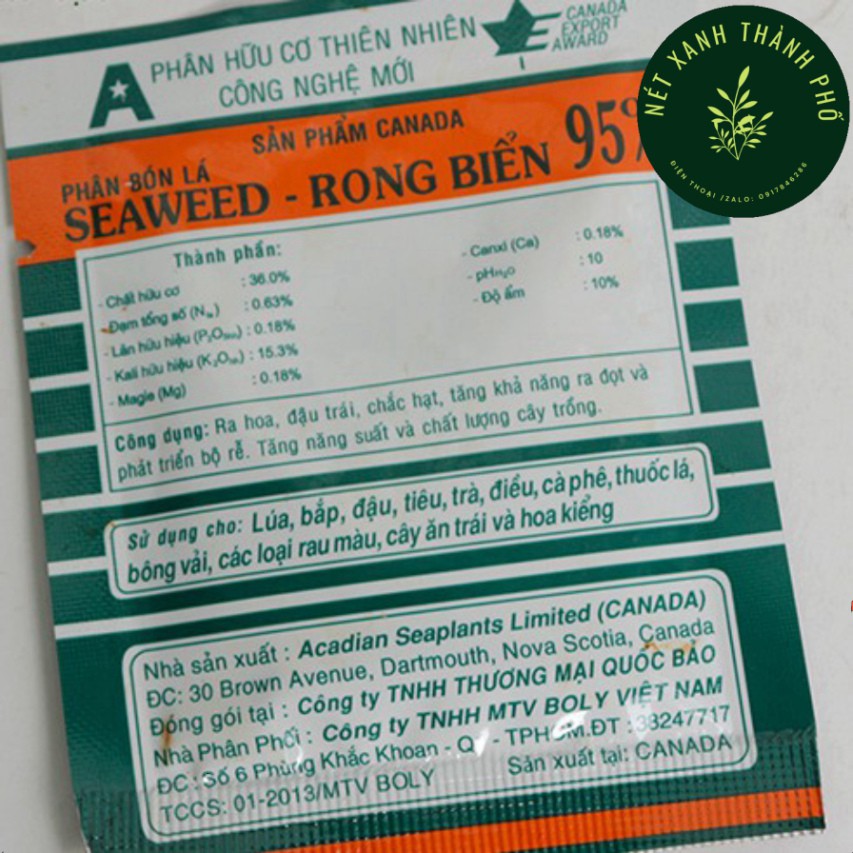 Giới thiệu Phân Bón Lá hữu cơ 95% Rong Biển SEAWEED, Phân Hữu Cơ Khoáng Vi Sinh 10gr