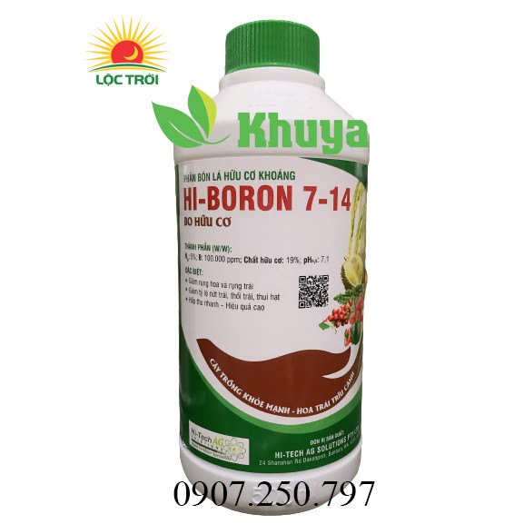 Giới thiệu Phân bón lá hữu cơ cao cấp Hi-Boron 7-14 chai 500ml Bo Hữu Cơ