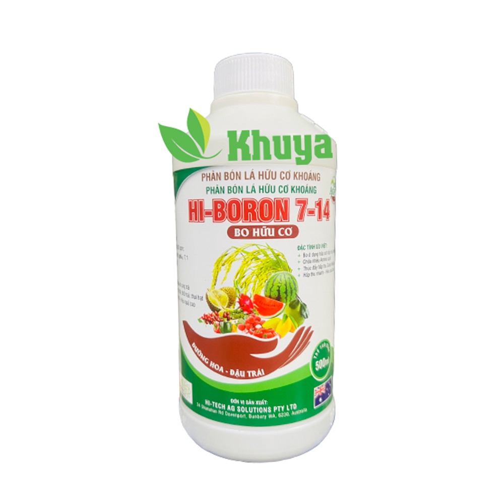 Phân bón lá hữu cơ cao cấp Hi-Boron 7-14 chai 500ml Bo Hữu CơCây trồng khỏe mạnh - Hoa trái trĩu cành