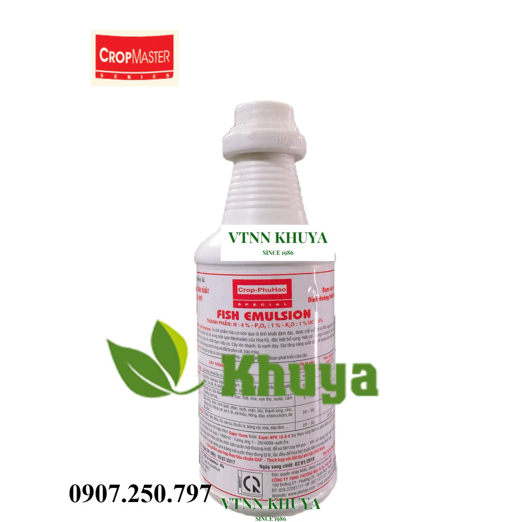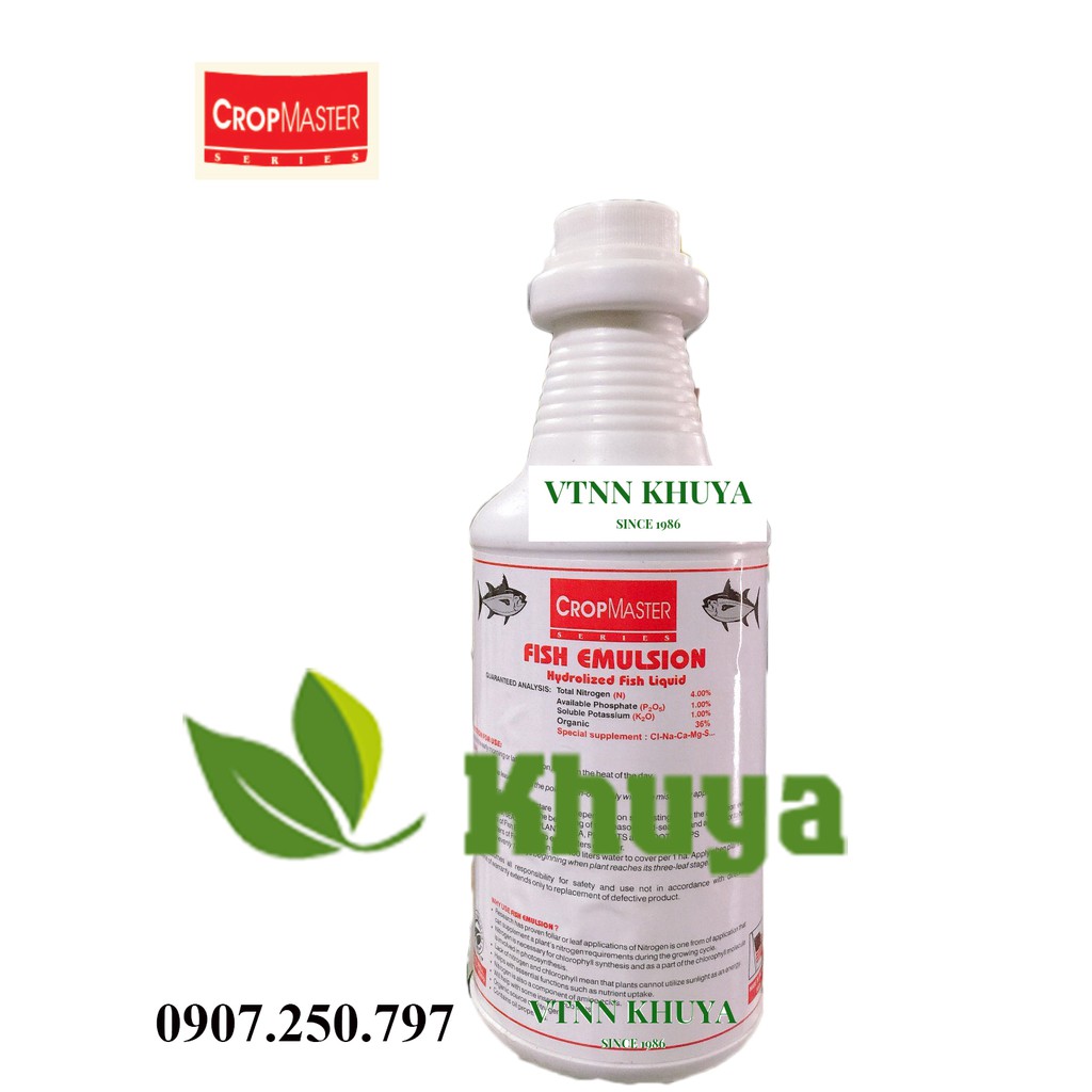 Fish Emulsion là chế phẩm hữu cơ bón qua lá tinh khiết đậm đặc, được chiết xuất từ cá Mòi nguyên con bằng phương pháp thủy phân lấy từ vùng biển lạnh Menhaden của Hoa Kỳ, đặc biệt bổ sung hữu cơ - trung vi lượng Cl, Na, Ca, Mg, S… giúp cây hấp thụ tức thì chất đạm hữu cơ. Cây lớn nhanh, lá xanh dày. Gia tăng năng suất và chất lượng sản phẩm sau thu hoạch. Tăng chất đề kháng kích ứng với đất bị pha cát, bạc màu