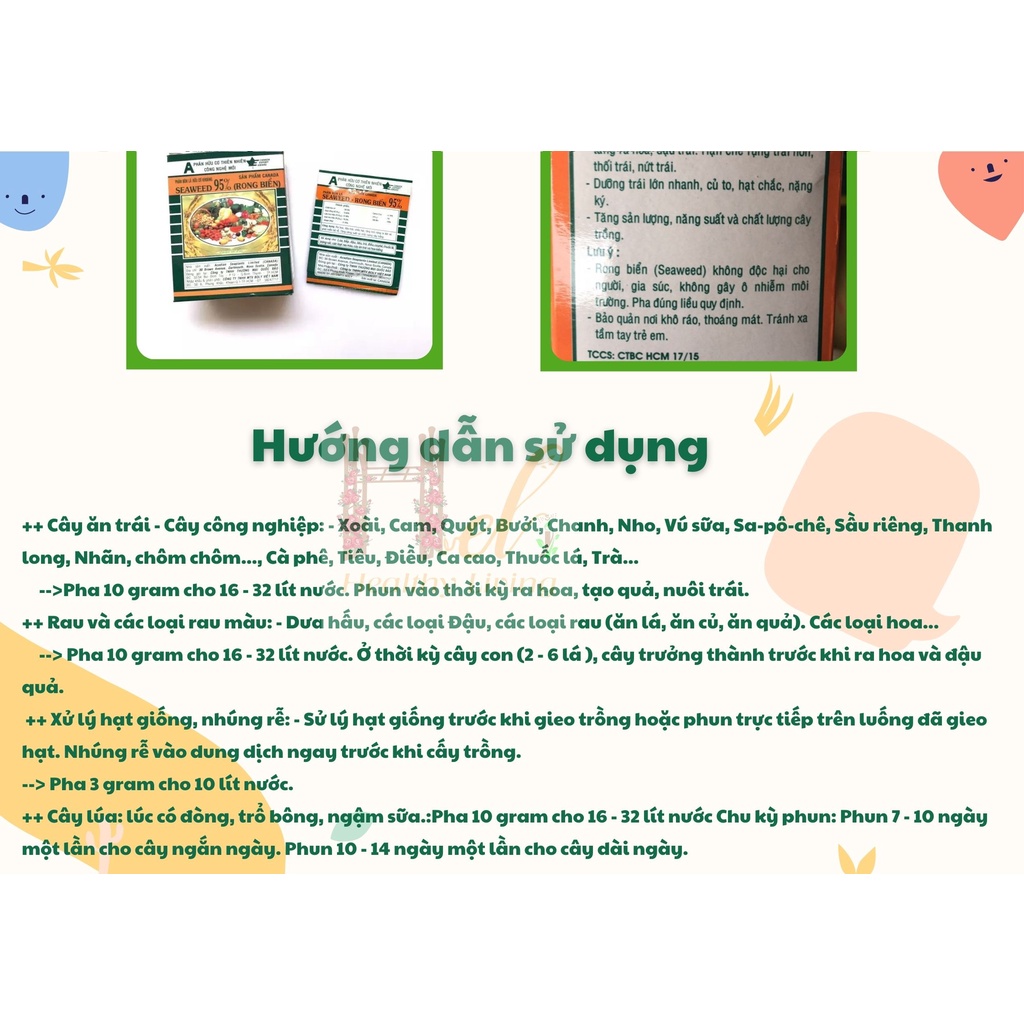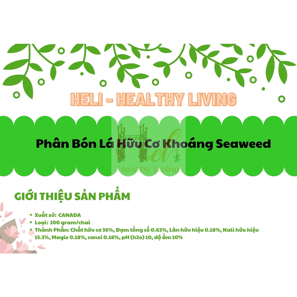 CAM KẾT HÀNG CHÍNH HÃNG, HOÀN 100% TIỀN NẾU SẢN PHẨM NHẬN ĐƯỢC KHÁC BAO BÌ QUẢNG CÁOChế phẩm Seaweed được chiết xuất từ loại rong biển tươi, xuất xứ từ Canada, sản phẩm được xem như kho chứa tự nhiên của 60 loại dinh dưỡng, Carbonhydrates, Aminoacids và các chất điều hòa sinh trưởng.