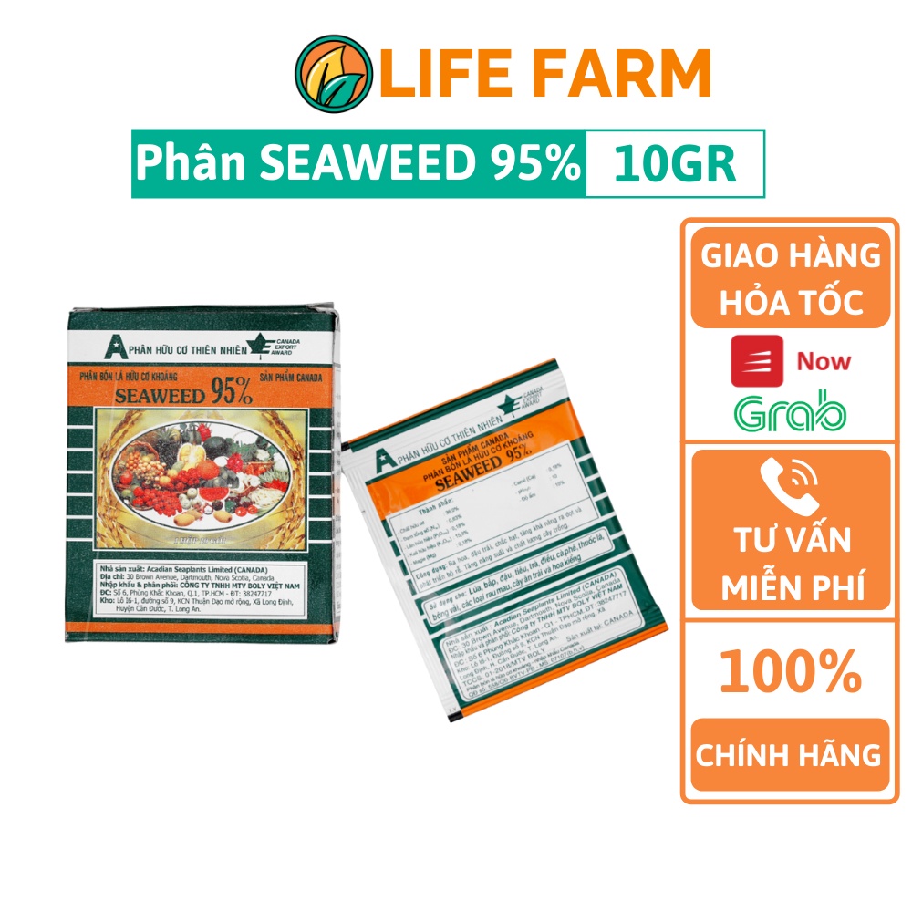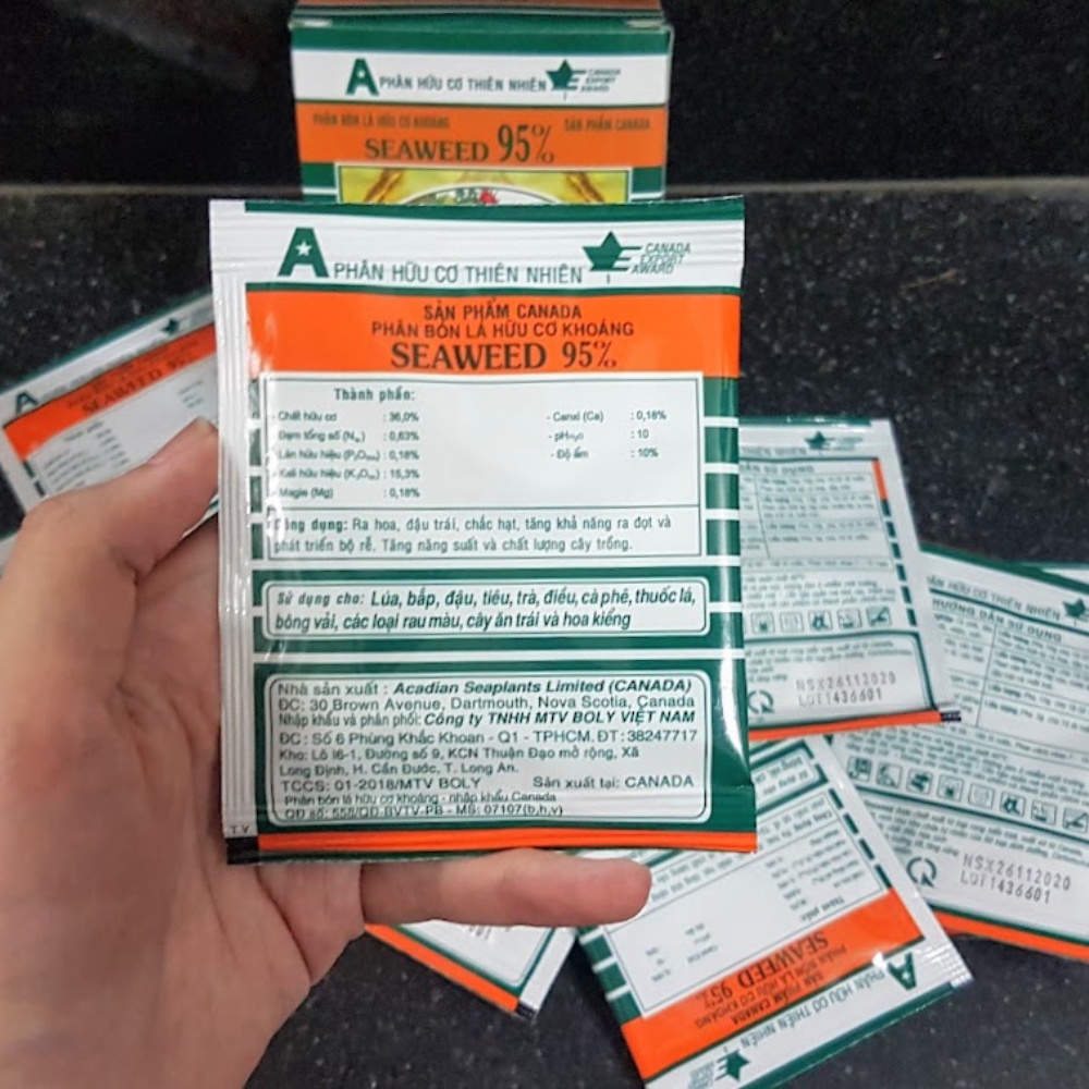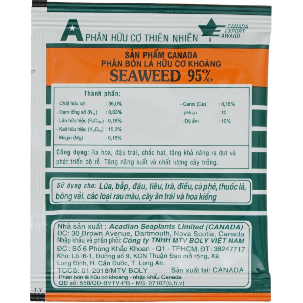 Phân Bón Lá Hữu Cơ Seaweed 95% (Rong Biển) Canada Kích Cây Ra Hoa Trái - Gói 10g (PRB-001).✔️ Thành Phần: