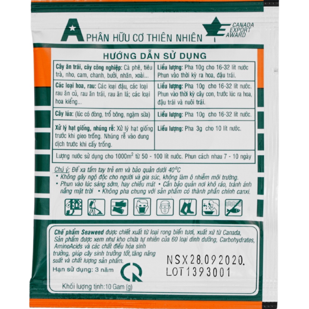 Giới thiệu Phân Bón Lá Hữu Cơ Seaweed 95% (Rong Biển) Canada Kích Cây Ra Hoa Trái - Gói 10g (PRB-001).