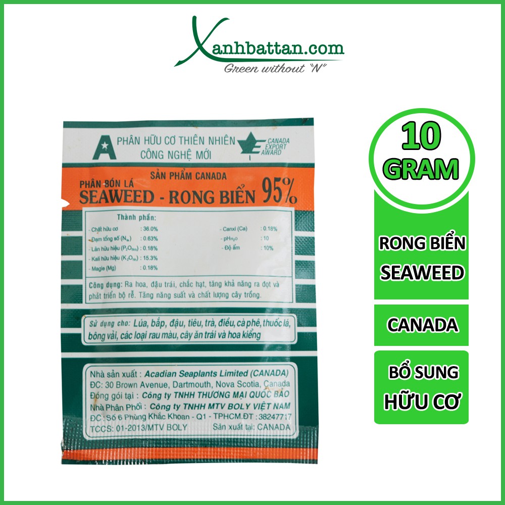 Phân bón lá hữu cơ Seaweed rong biển 95% Canada 10 gram