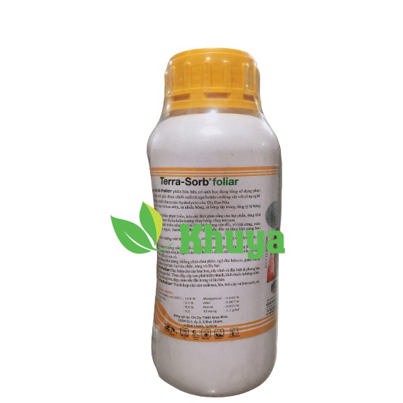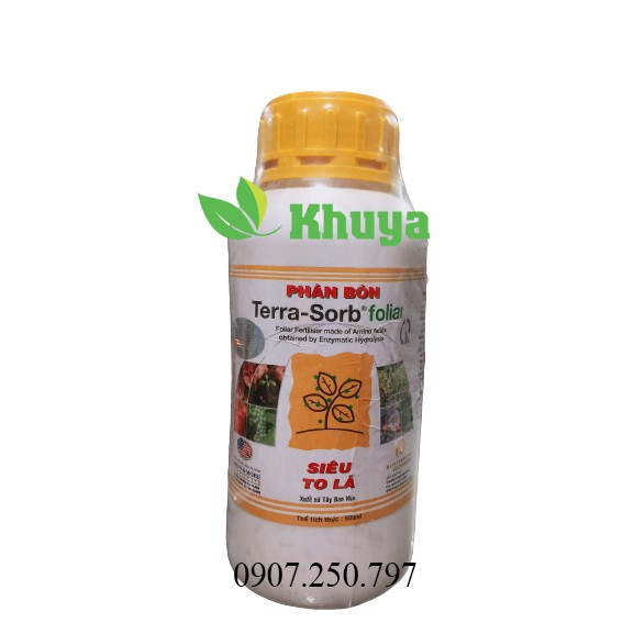 - Terra Sorb foliar là phân bón hữu cơ sinh học dạng lỏng sử dụng phun qua lá hoặc tưới gốc được chiết xuất từ nguồn hữu cơ động vật với công nghệ tiên tiến bậc nhất (Enzymic hydrolysis) của Tây Ban Nha.