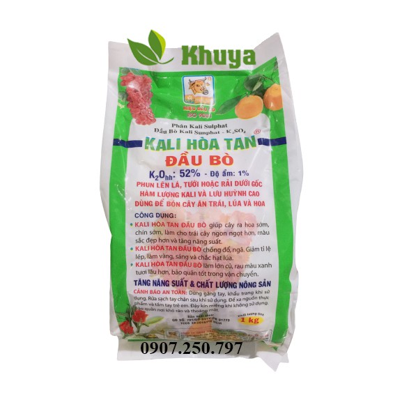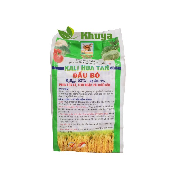Giới thiệu Phân bón lá Kali Sulphat Kali hòa tan Đầu Bò túi 1kg