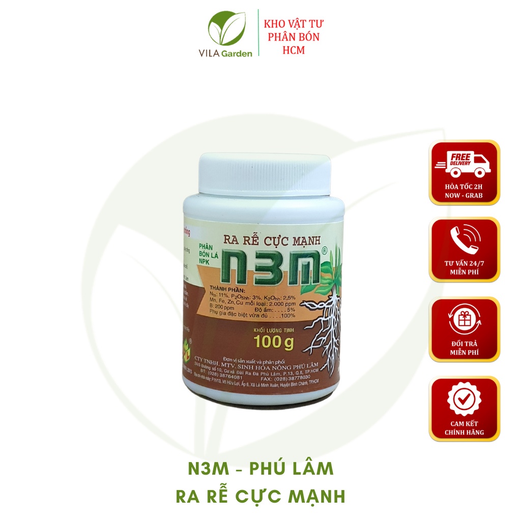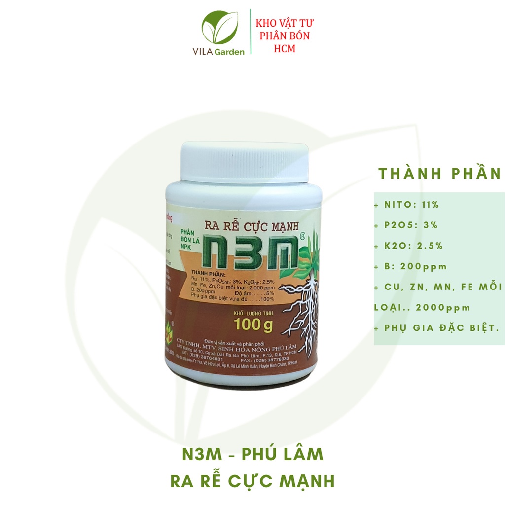 Ra Rễ Cực Mạnh N3M 100gSản phẩm kích thích ra rễ cực mạnh N3M được sản xuất bởi công ty TNHH MTV Sinh Hóa Nông Phú Lâm. Sản phẩm được rất nhiều người ưa chuộng sử dụng vì giá thành rẻ, công dụng kích thích ra rễ được dùng trên nhiều loại cây trồng từ rau, cây ăn quả cho đến các loại hồng hồng – hoa kiểng.