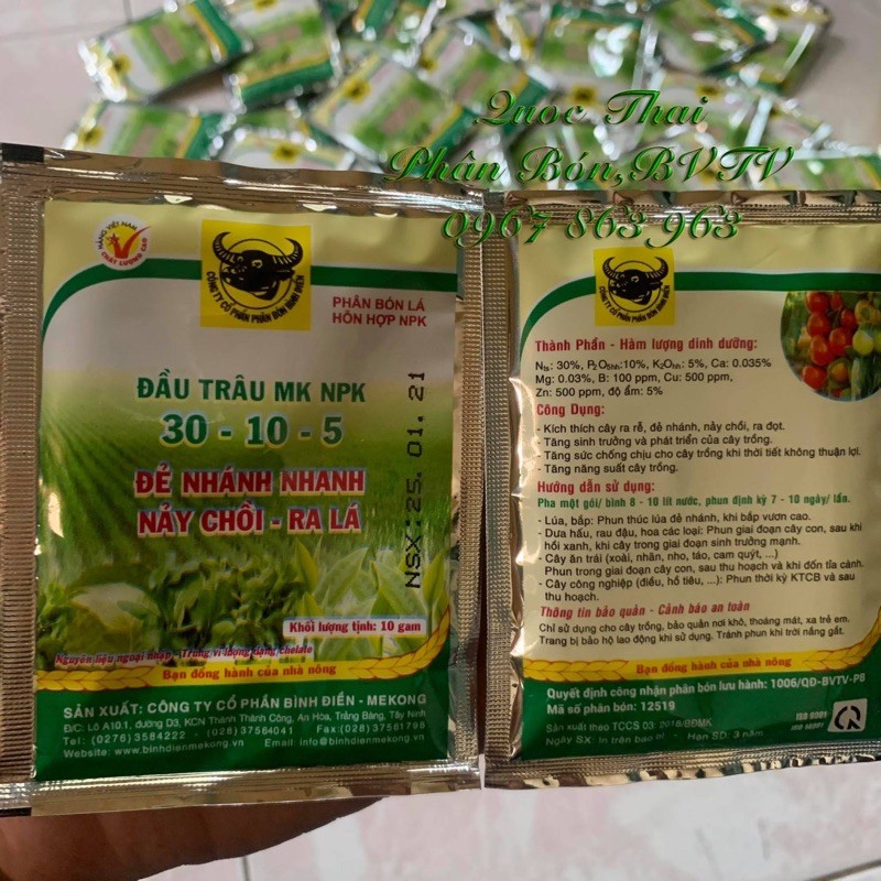 Giới thiệu Phân Bón Lá Kích Đẻ Nhánh, Nảy Chồi, Ra Lá - Đầu Trâu MK 30-10-5 (gói 10gram)