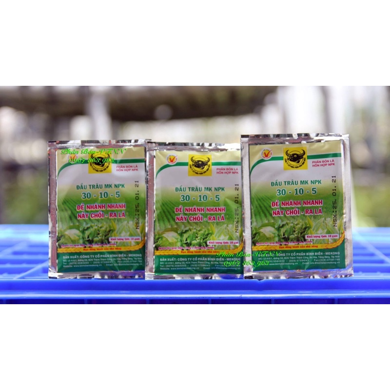 Phân Bón Lá Kích Đẻ Nhánh, Nảy Chồi, Ra Lá - Đầu Trâu MK 30-10-5 (gói 10gram)