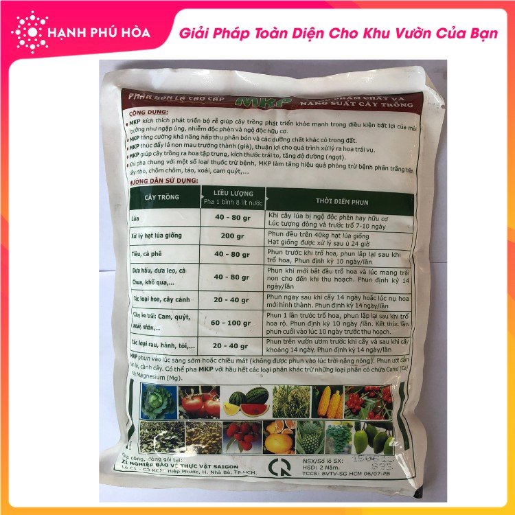 Giới thiệu Phân Bón Lá Lân Kali MKP 0-52-34 1kg/ Gói- Phát Triển Rễ Mạnh, Thúc Ra Lá Non Tăng Hấp Thụ Phân Bón, Ra Hoa Đều, Trái To