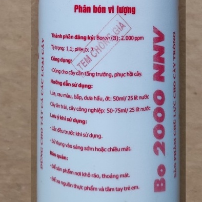 Thành Phần đăng ký: Bo: 2.000ppm và các phụ gia đặc biệt vừa đủ 100%