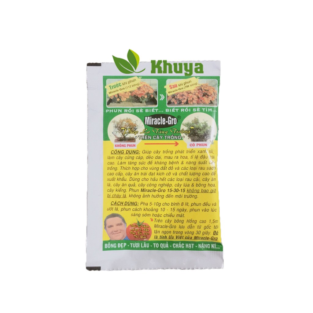Nhà cửa & Đời sống > Làm vườn > Phân bón || Phân bón lá Miracle Gro 15-30-15 gói 10gr Xanh lá - Đâm ChồiCòn hàng