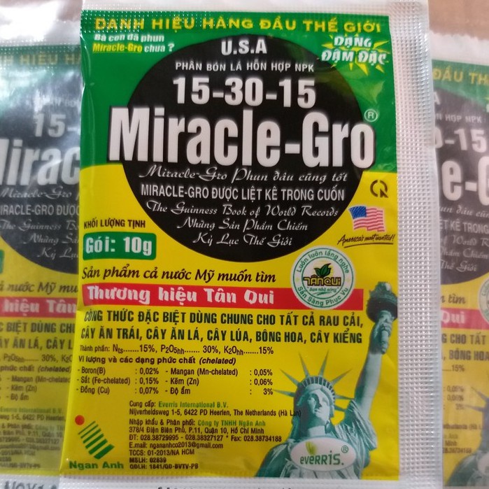Nhà cửa & Đời sống > Làm vườn > Phân bón || Phân Bón Lá Miracle Gro 15-30-15 (10g),Phân Bón Miracle-Gro chuyên dùng cho hoa lan,hồng,thúc ra hoa các loại cây trồngCòn hàng