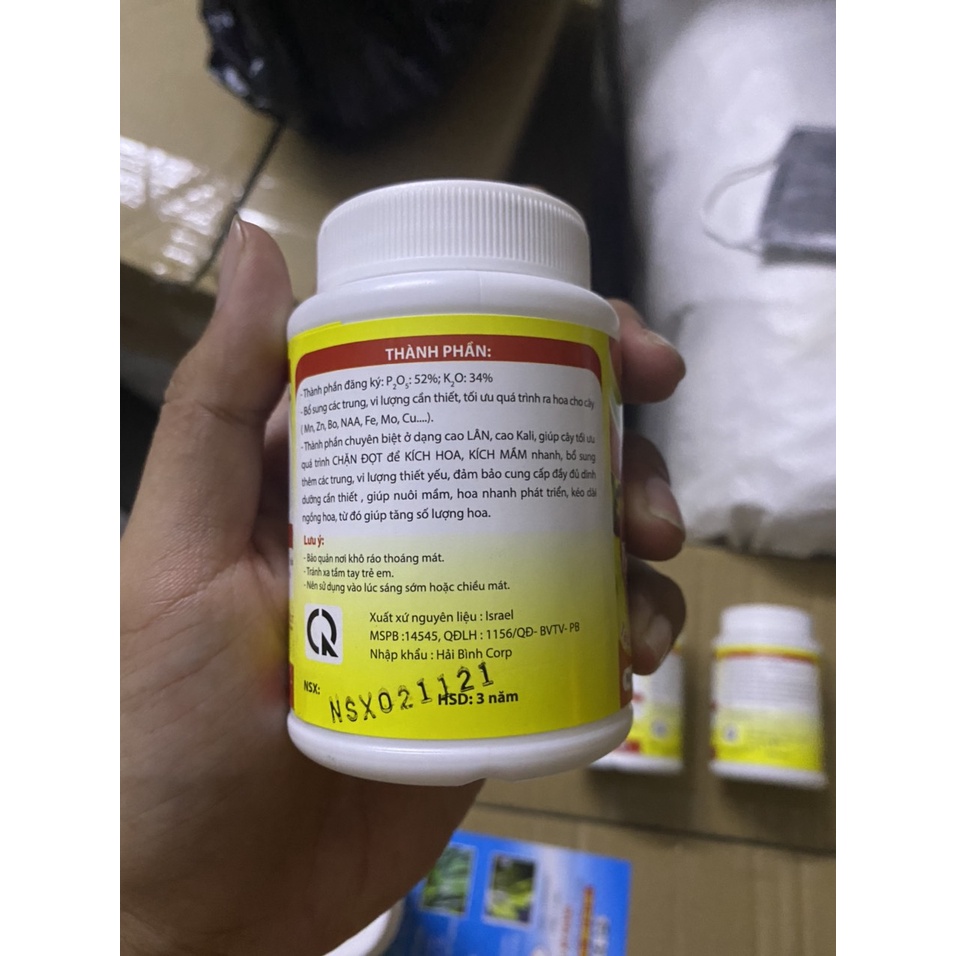 Phân bón lá MKP 0-52-34 Tạo Mầm Hoa cực tốt - Ra Hoa Cực Mạnh Hũ 100gThành Phần đăng kí: P2O5 52% K2O 34%