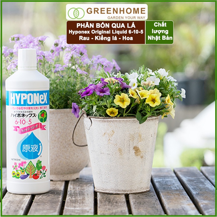 Giới thiệu Phân bón lá Nhật, Hyponex, Original Liquid 6-10-5, chai 160ml cho rau, hoa, kiểng lá, kích mầm, chồi |Greenhome