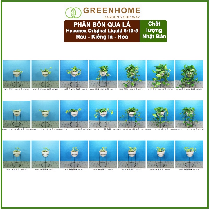 -Dùng phân bón Hyponex Original Liquid 6-10-5 giúp cây xanh lá tốt lá cực nhanh, hình thành mầm và kích nãy chồi mạnh