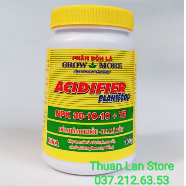 Phân Bón Lá NPK 30 - 10 - 10 + TE Grow More (100g)- Giúp cây tăng trưởng mạnh ( chứa nhiều Đạm). Trong đó chứa tới 30% Đạm, nhưng chỉ có 10% Lân và 10% Kali. Loại phân này sử dụng cho cây lan con, chồi non mới tách, để cây ra rễ, nẩy con, ra lá và phát triển thân cây…