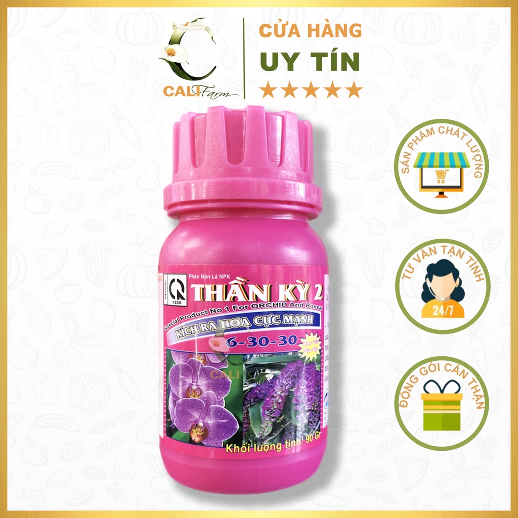 THẦN KỲ 2 là phân bón với hàm lượng lân, kali ở dạng dễ tiêu giúp kích ra hoa, dưỡng hoa nở to màu đẹp cánh hoa dày, cành hoa chắc khỏe, hương thơm lâu bền, hoa lâu tàn tằng sức đề kháng chống chịu thời tiết khắc nghiệt. đặc biệt tốt trong thời gian ra hoa.