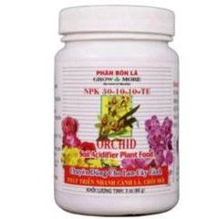 Phân bón NPK cao cấp Growmore 30-10-10 + TEĐây là loại phân giúp cây tăng trưởng mạnh (vì chúng có chứa nhiều Đạm). Trong thành phần của chúng chứa tới 30% Đạm, nhưng chỉ có 10% Lân và 10% Kali. Loại phân này sử dụng cho cây lan con, chồi non mới tách, để cây ra rễ, nẩy con, ra lá và phát triển thân cây…