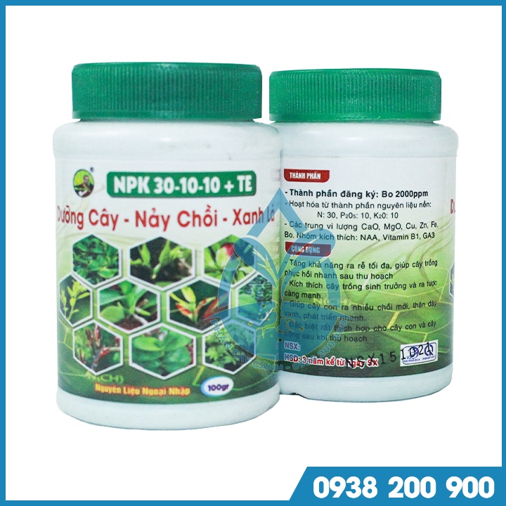 Giới thiệu Phân bón lá NPK Giúp dưỡng cây nảy chồi, xanh lá - Chuyên dùng cho rau, hoa, cây cảnh 30-10-10 +TE - chai 100gr