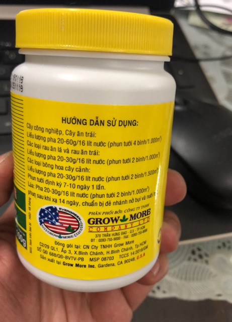 Giới thiệu ☘ PHÂN Bón lá NPK GROW MORE 20-20-20 TE (hũ 100gr)