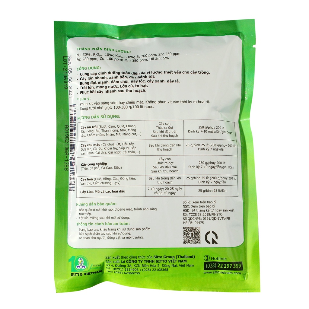 Phân bón lá NPK hòa tan Sitto FoPro 30-10-10+TE gói 250g/500g