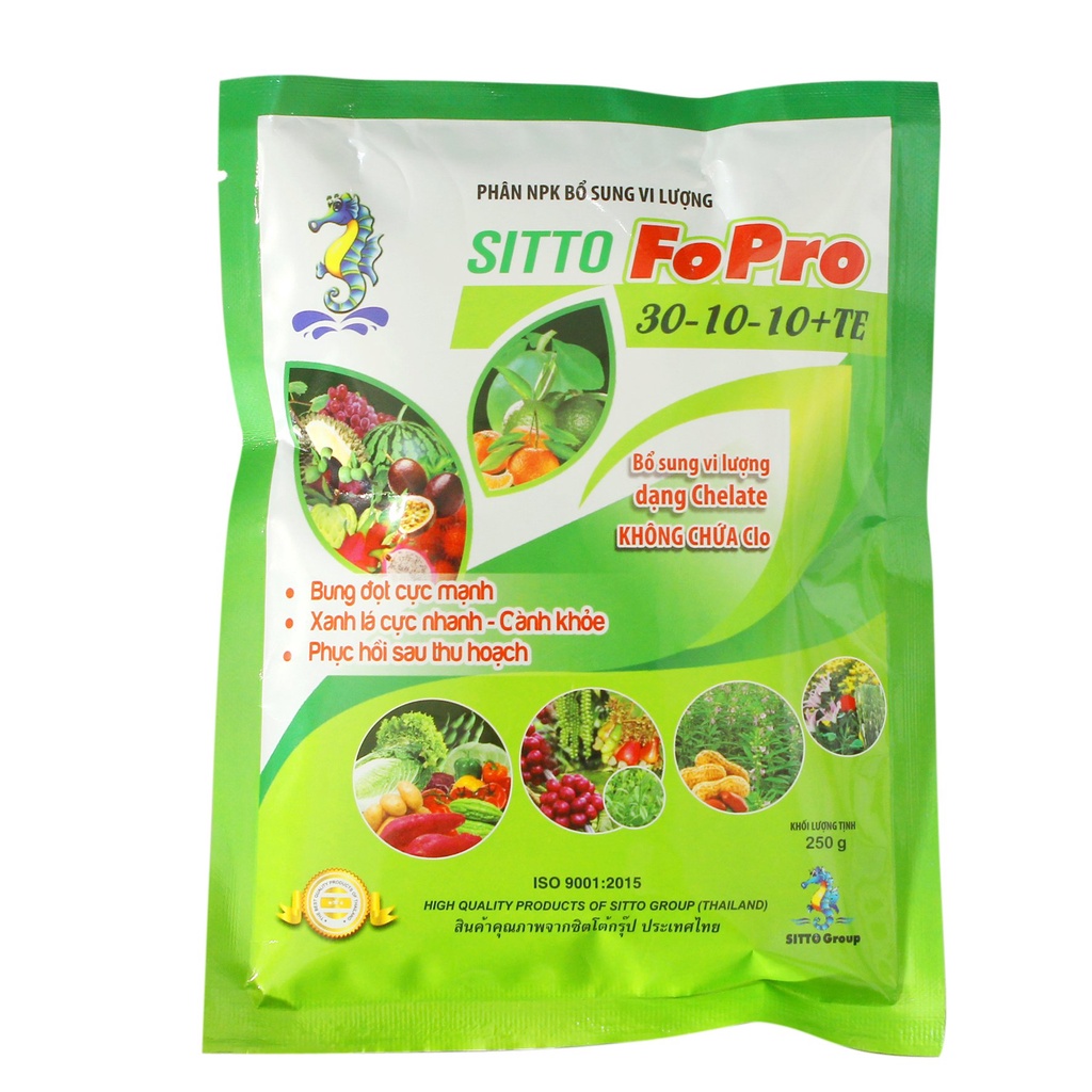 Nhà cửa & Đời sống > Làm vườn > Phân bón || Phân bón lá NPK hòa tan Sitto FoPro 30-10-10+TE gói 250g/500gCòn hàng