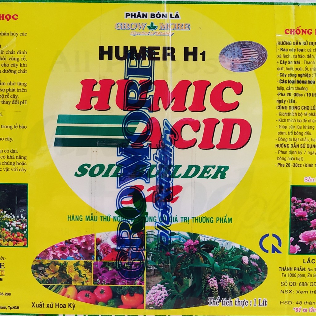 Phân Bón Lá Humic Acid 322 GrowmorePhân Bón Grow More Xuất Xứ Hoa Kỳ (1 lít)