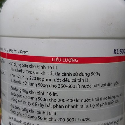 Phục hồi vườn: sau khi cắt tỉa cành sử dụng 500g cho 1 – 2 phuy 220 lít phun ướt đều cả tán lá.