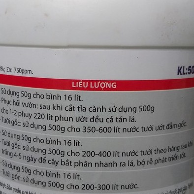 Phục hồi vườn: sau khi cắt tỉa cành sử dụng 500g cho 1 – 2 phuy 220 lít phun ướt đều cả tán lá.