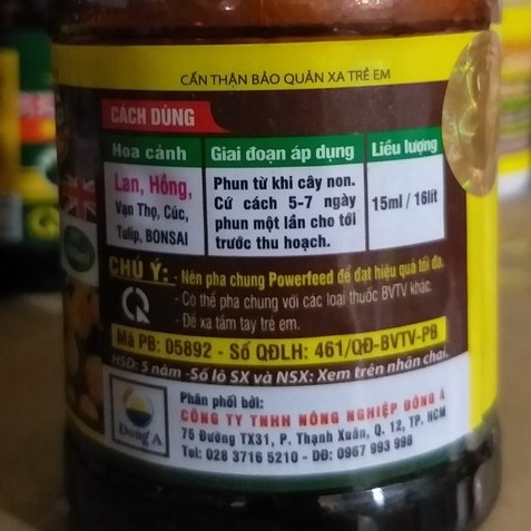 - Đối với lan, hồng, vạn thọ, tulip, bonsai. Pha liều lượng 15ml/16 lít nước. Phun từ khi cây non, tuần phun 1 lần.