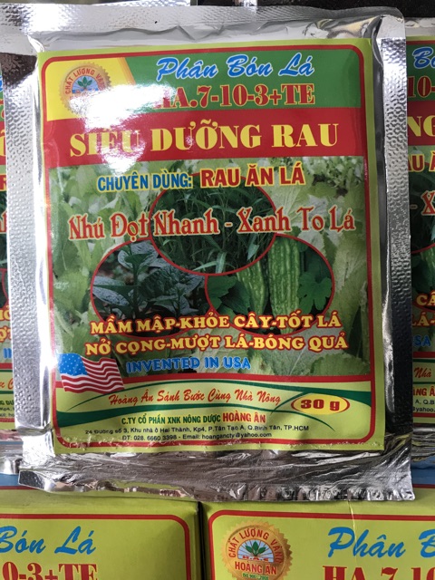 Phân bón lá HA.7-10-3 + TE - SIÊU DƯỠNG RAU của Cty Hoàng Ân chuyên dùng cho rau ăn lá- Nhú Đọt Nhanh - Xanh To Lá