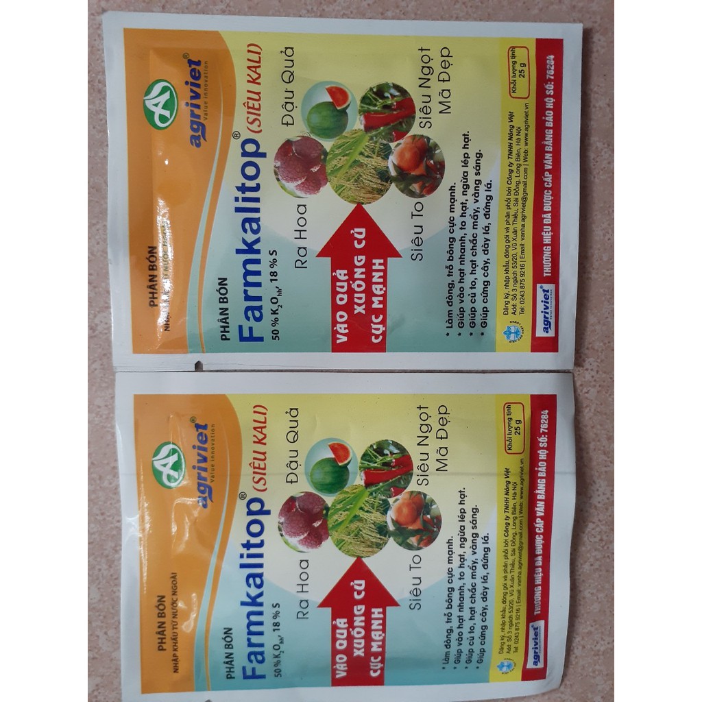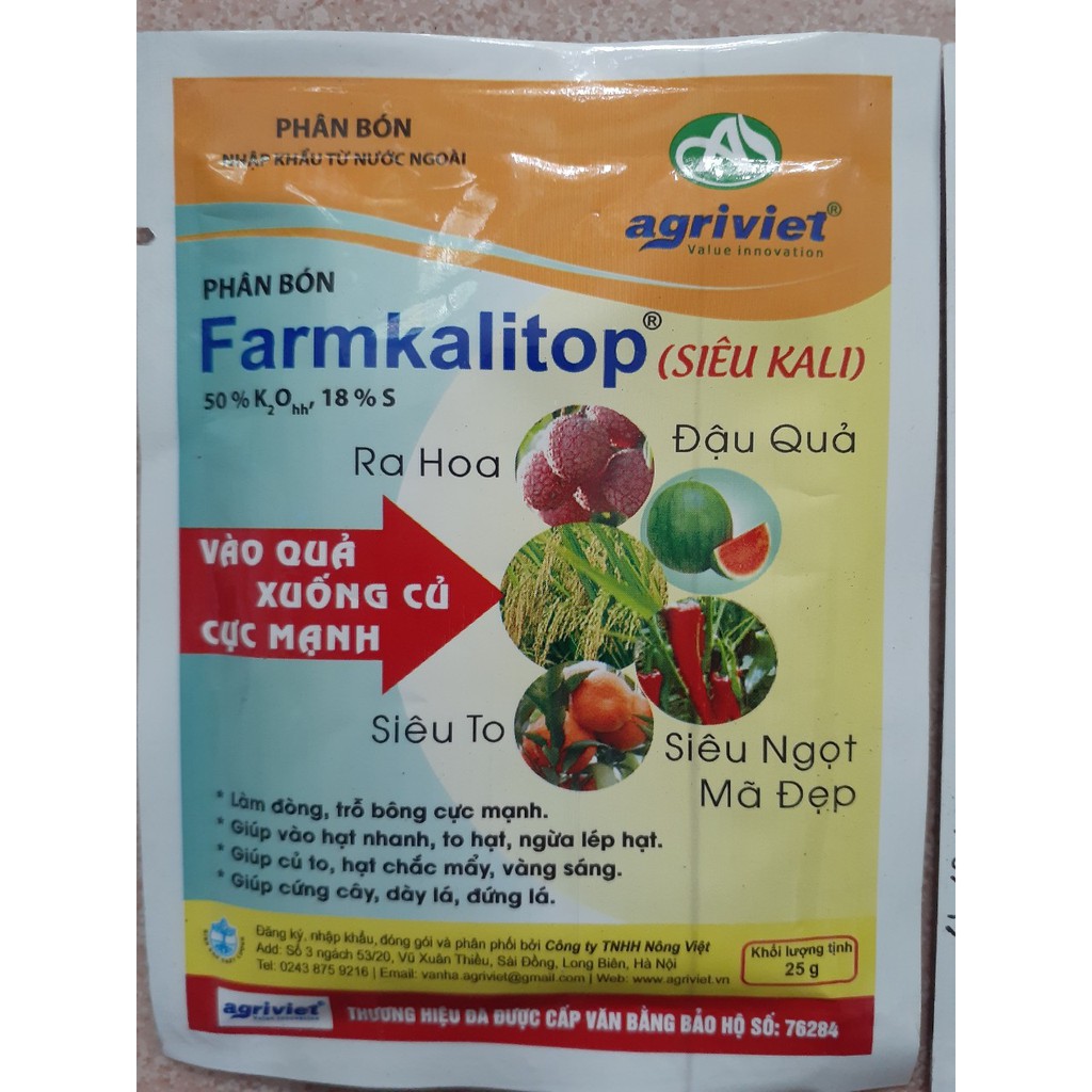 Phân bón nhập khẩu farmKalitop (siêu Kali)Thành phần: 50% K2Ohh, 18% S