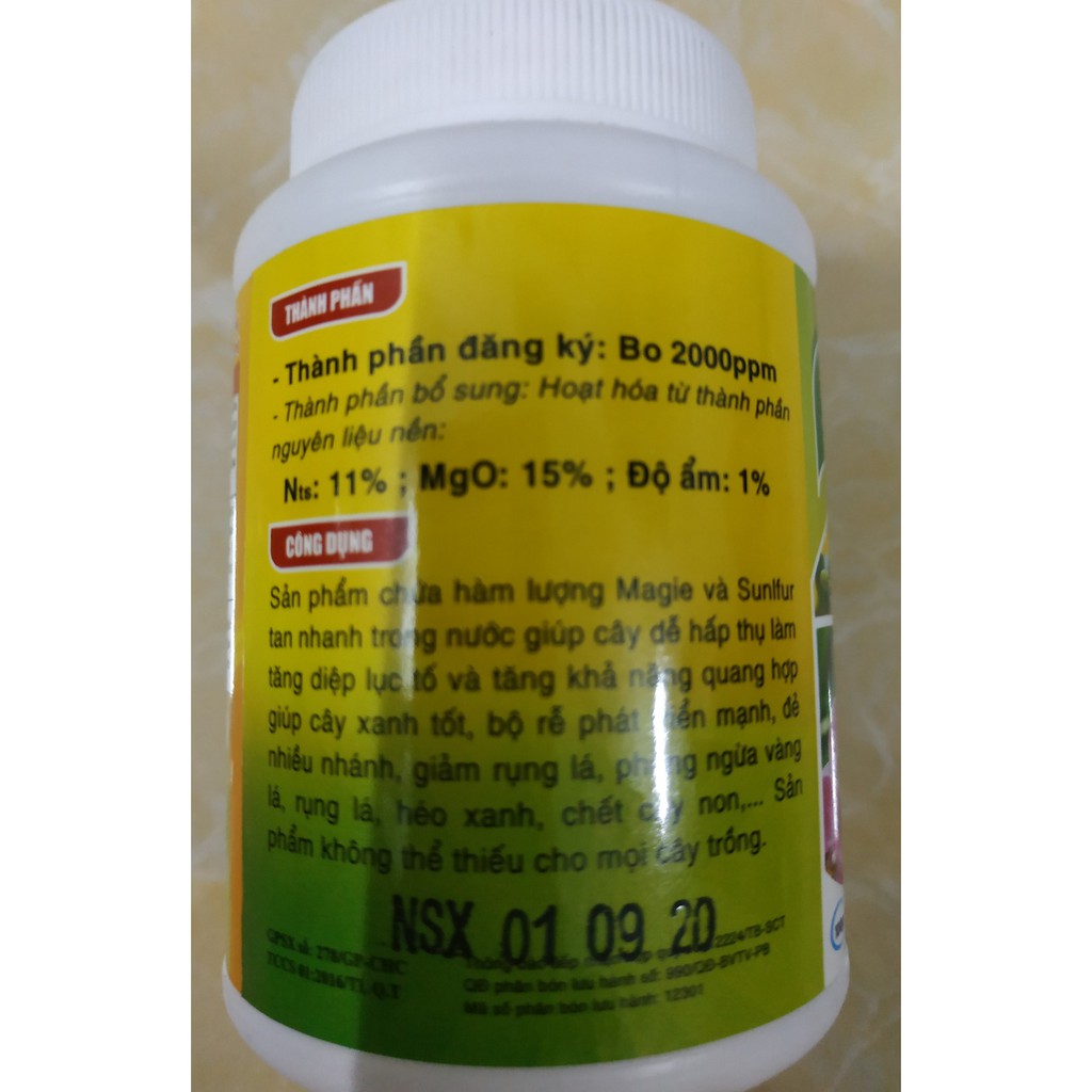 Công dụng: Sản phẩm chứa hàm lượng Magie và Sulfur tan nhanh trong nước giúp cây dễ hấp thụ làm tăng diệp lục tố và tăng khả năng quang hợp giúp cây xanh tốt, bộ rễ phát triển mạnh, đẻ nhiều nhánh, giảm rụng lá, phòng ngừa vàng lá, héo xanh, chết cây non,…Sản phẩm không thể thiếu cho mọi cây trồng.