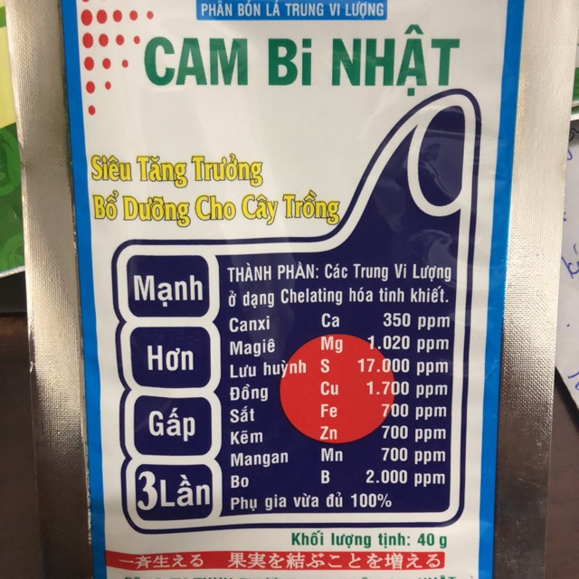 Nhà cửa & Đời sống > Làm vườn > Phân bón || Phân bón lá ☘️ Siêu tăng trưởng CAM Bi Nhật 40gr / Bổ sung trung vi lượng cho câyCòn hàng
